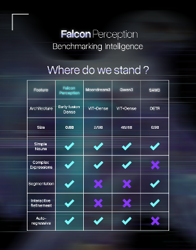 Falcon Perception: 0.6B parametri e batte SAM 3 nel grounding visuale — spatial +21%, OCR-guided +13%